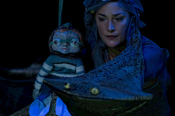 Two puppeteers and a musician step into the space shaping and transforming it. The constantly-moving stage area is alive, surrounding toddlers and helping them feel at home in this uncommon world. The live soundscape created live takes them from the wide open shores down to the very deepest part of the sea. The wind whispers a few resonating words and lulls toddlers as waves beat a rhythm carried along by the currents.